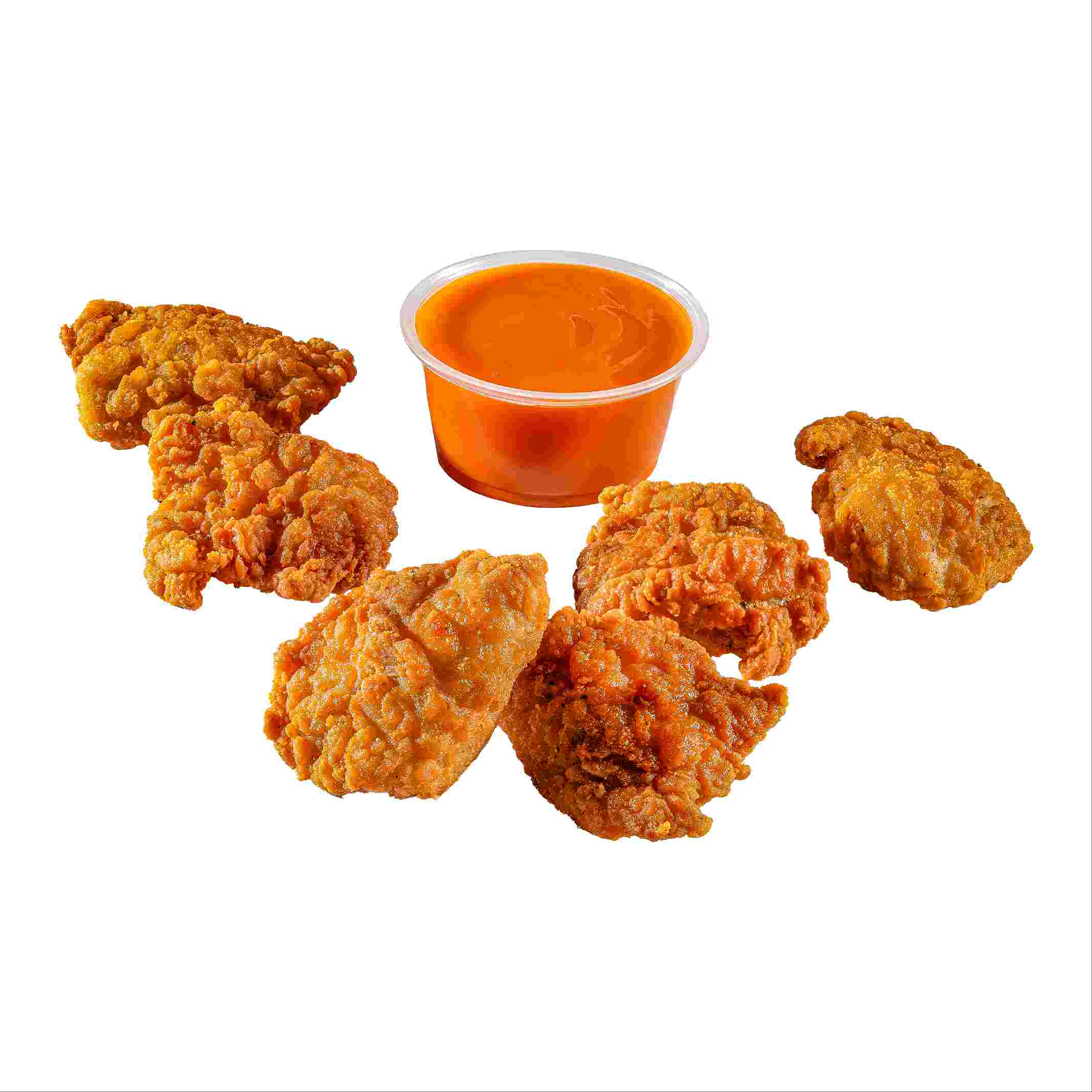 اجنحة دجاج بدون عظم، مقلية، مغطاة بفتاة الخبز، مع صوص باربكيو او صوص حار